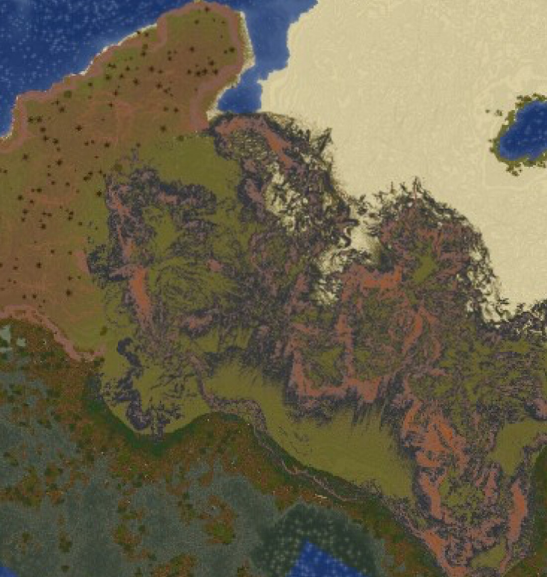 Als er weiter gen Osten läuft, stößt er bei einem riesigen Gebirge auf eine Ansammlung von Ork Jägern. Diese entdecken und wollen ihn in ihrem Dorf essen. Doch als sie rast machen klaut der elf einen Ork Dolch und befreit sich und ersticht sie. Ausgerüstet mit Proviant begibt er sich weiter ins Gebirge.