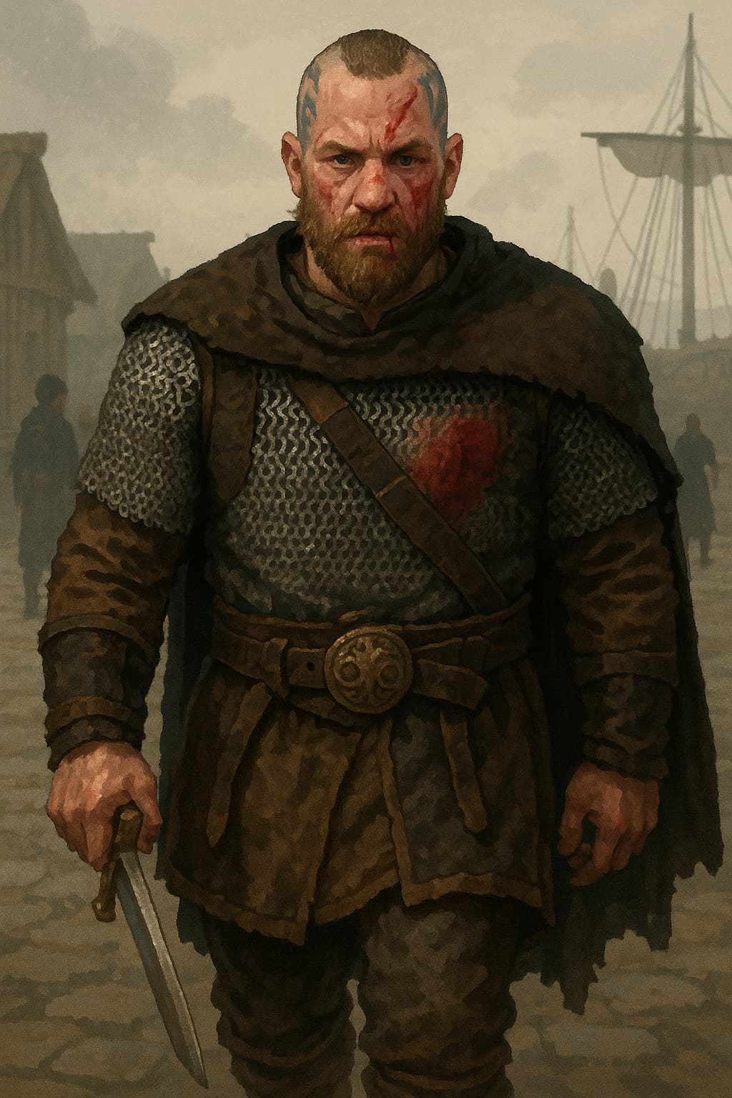 Während dieser Zeit begegnete ich Kragan Korbenson, einem Krieger, dessen Herkunft so rätselhaft war wie seine Absichten. Er wirkte ruhig und entschlossen, und es schien, als trage auch er eine Last, die er mit sich herumtrug. Wir trafen uns kurz am Hafen, wo die Luft schwer vom Salz und von rauem Wind war.